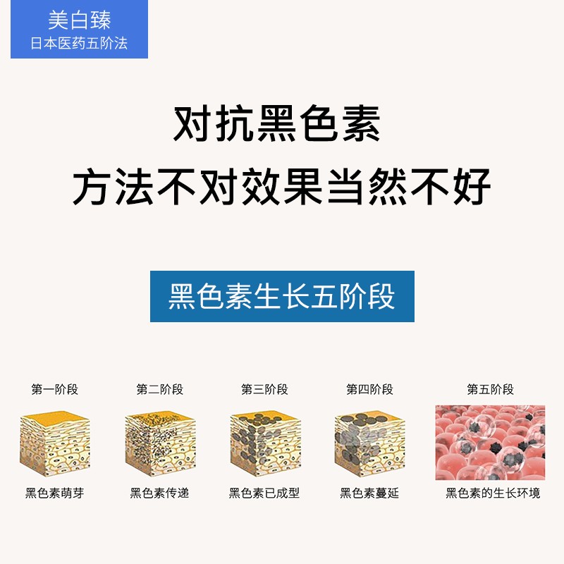 而美白臻是针对亚洲皮肤研发的美白产品,是根据了黑色素的成长阶段来解决黑色素的每个环节,从每一个环节入手,针对性强了,同时也降低了刺激性,在护肤品中是一种常见的平衡手段了。而不是单一的美白产品,只重视了某个环节而忽视了其他黑色素发的环节!