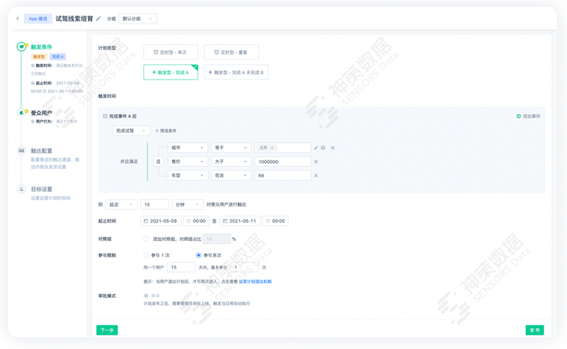 基于神策营销云行为触发(Event-Triggered)的先进能力,协同多渠道,自动完成实时的、连接场景的高价值个性化信息传递,简化运营团队与营销团队复杂的工作流,促进转化目标达成。
