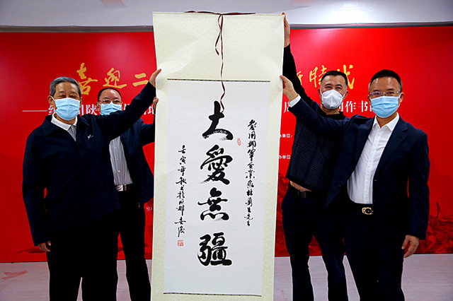 (张志军将军向爱心企业家赠送墨宝)