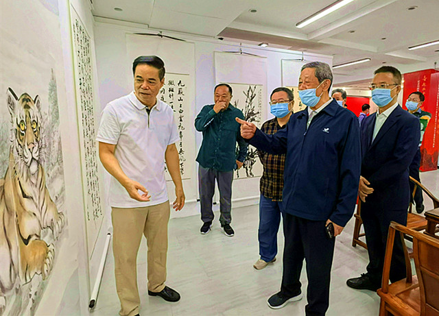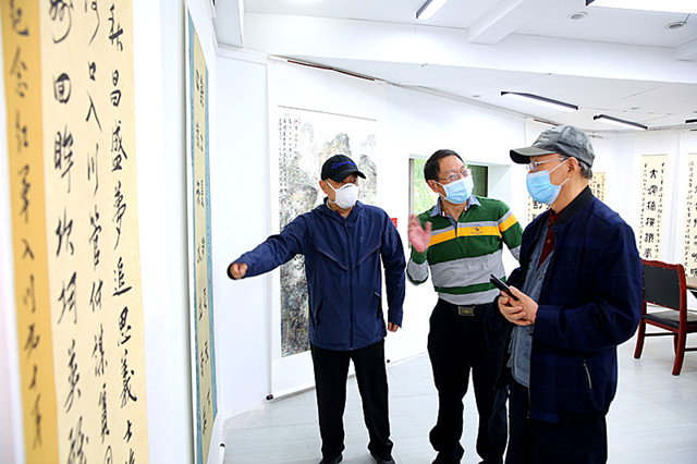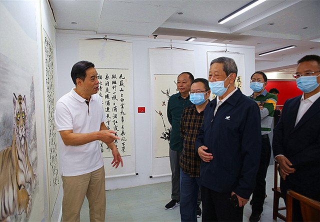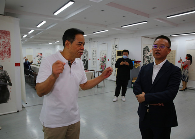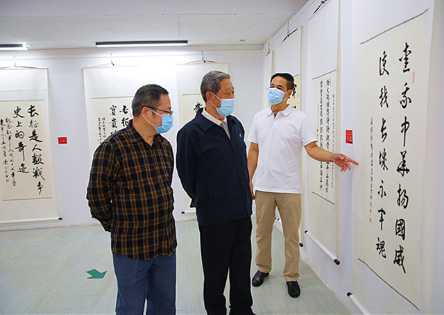 简短的座谈会后,与会嘉宾们兴致勃勃地参观了书画展。大家对本次书画展活动在组织、思想、内容、艺术等方面都给予了高度评价,大家一直认为本次书画展有以下几个主要特点: