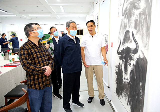 (嘉宾观展<从左至右:黎明、陈洪、淳树文、张志军>)
