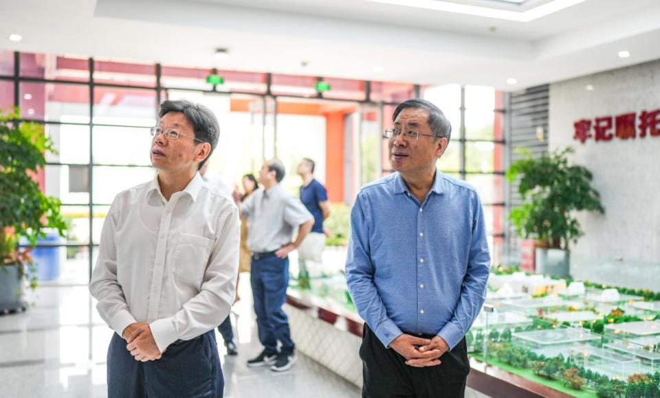 新华社贵州分社与中国电信贵州公司战略合作协议签约仪式在中国电信云计算贵州信息园举行。图为中国电信贵州公司党委书记、总经理马杉(左)陪同新华社贵州分社社长、分党组书记赵新兵(右)参观信息园。
