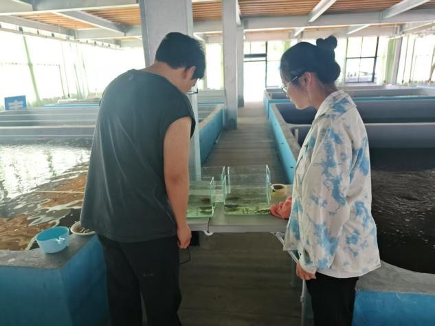 在花鼓漫渔业,团队在顾教授指导下详细记录富氢水在高密度青蟹养殖中的关键水质数据,重点分析了恒温控制系统与富氢水技术的协同增效机制;在东航水产育苗车间,与技术人员深入探讨富氢水对虾苗变态发育成活率的影响机理,顾教授亲自参与指导幼体培育实验的设计与观察;在恒茂顺生物科技,团队成员拆解富氢水生成设备核心组件,在顾教授的技术把关下模拟不同养殖水体的参数适配优化方案;在逸泽水产的养殖工厂,则系统对比了传统水泥池与富氢水钢构池在能耗、效率等方面的显著差异。
